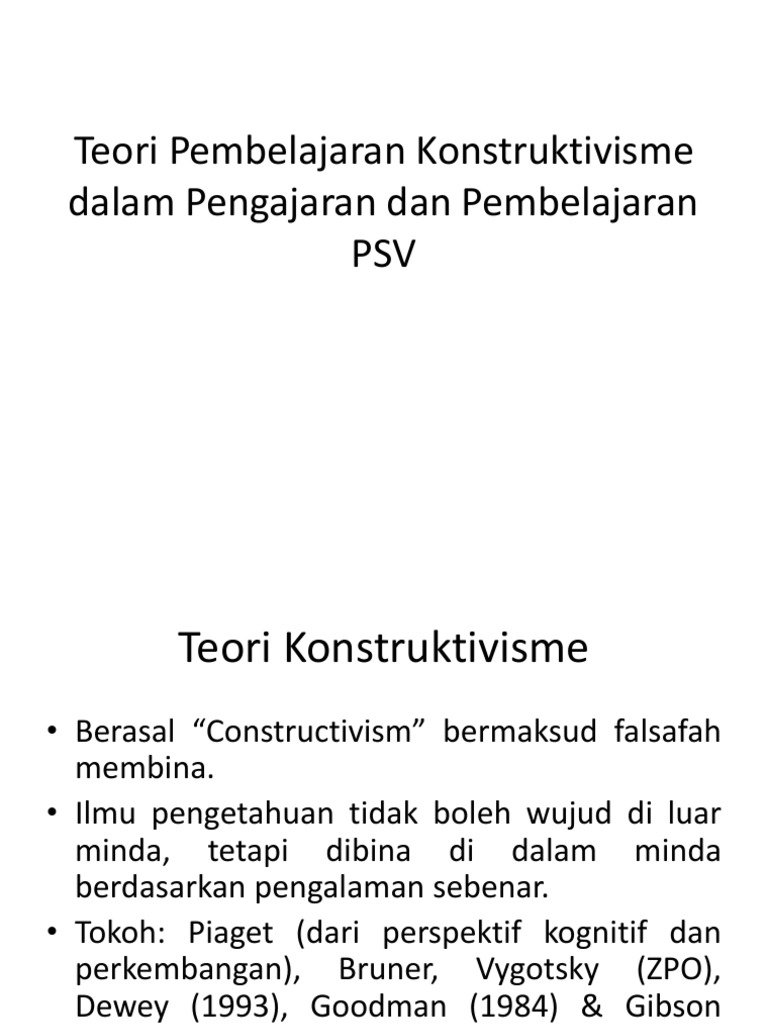 Teori Pembelajaran Konstruktivisme Dalam Pengajaran Dan Pembelajaran Psv Pdf