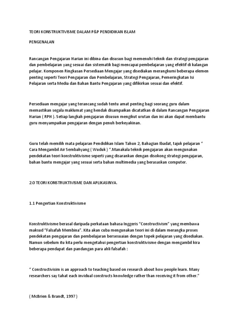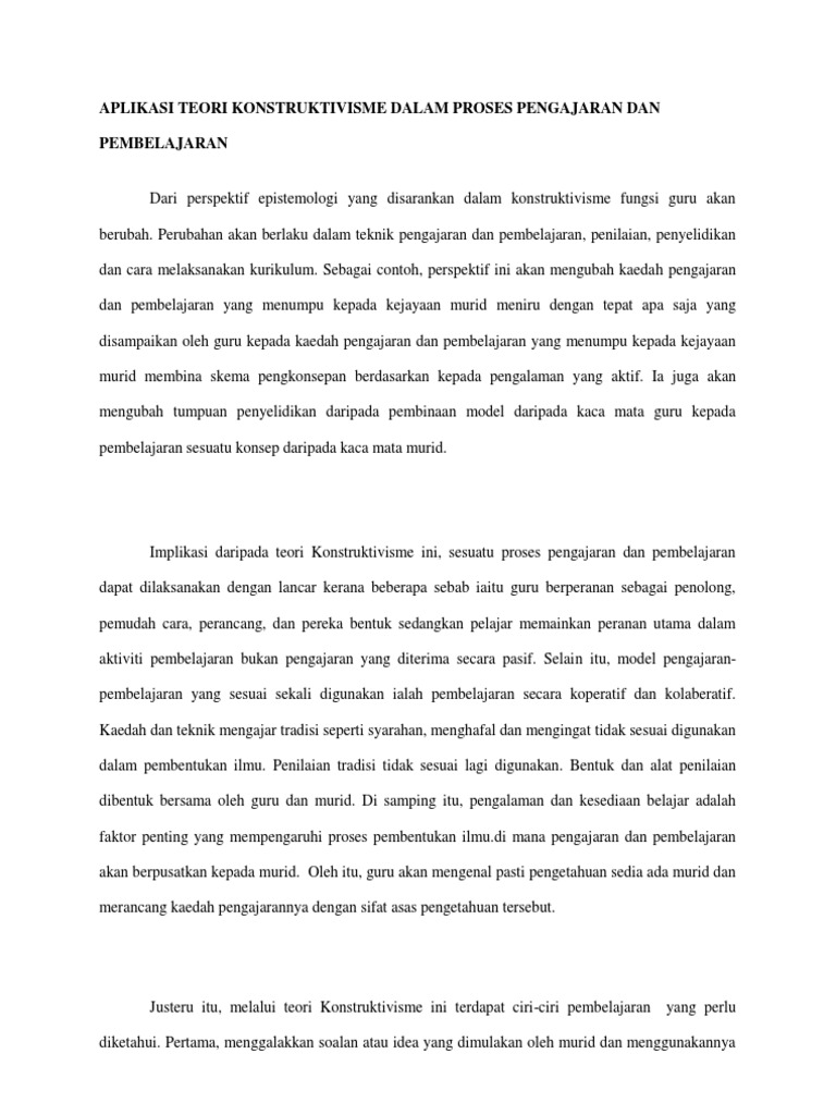 Aplikasi Teori Konstruktivisme Dalam Proses Pengajaran Dan Pembelajaran Pdf